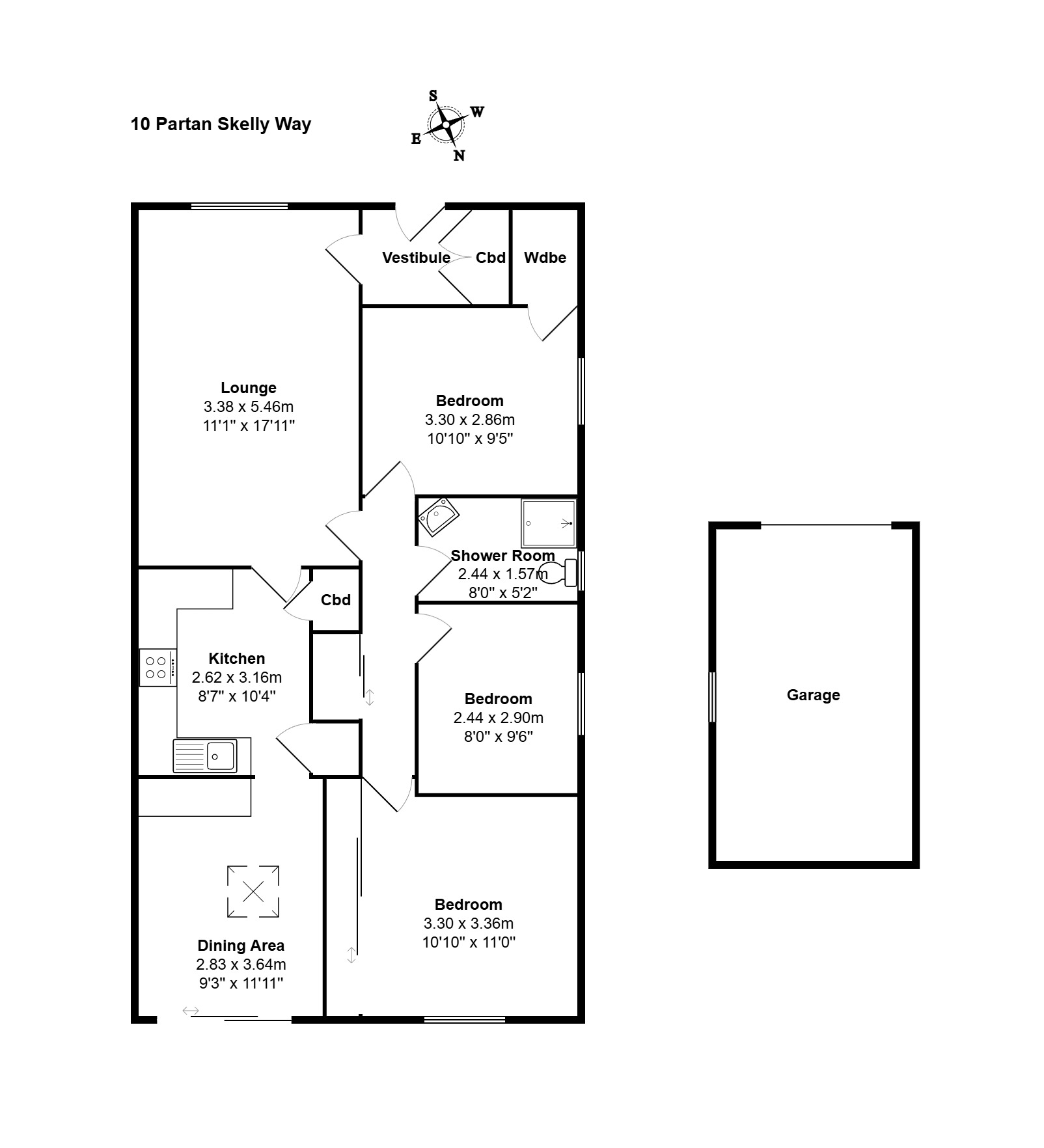A lovely bright and airy lounge with a large picture window overlooking the front of the property. Feature electric fire with pebble effect. Curtains and Vertical blinds. Radiator.