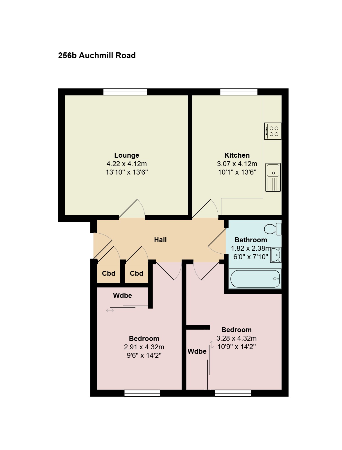 Overlooking the front of the development this good sized double bedroom has a fitted wardrobe with sliding doors providing ample shelving and hanging space. Night and day window blind. Heater. The lampshade will be removed prior to sale.