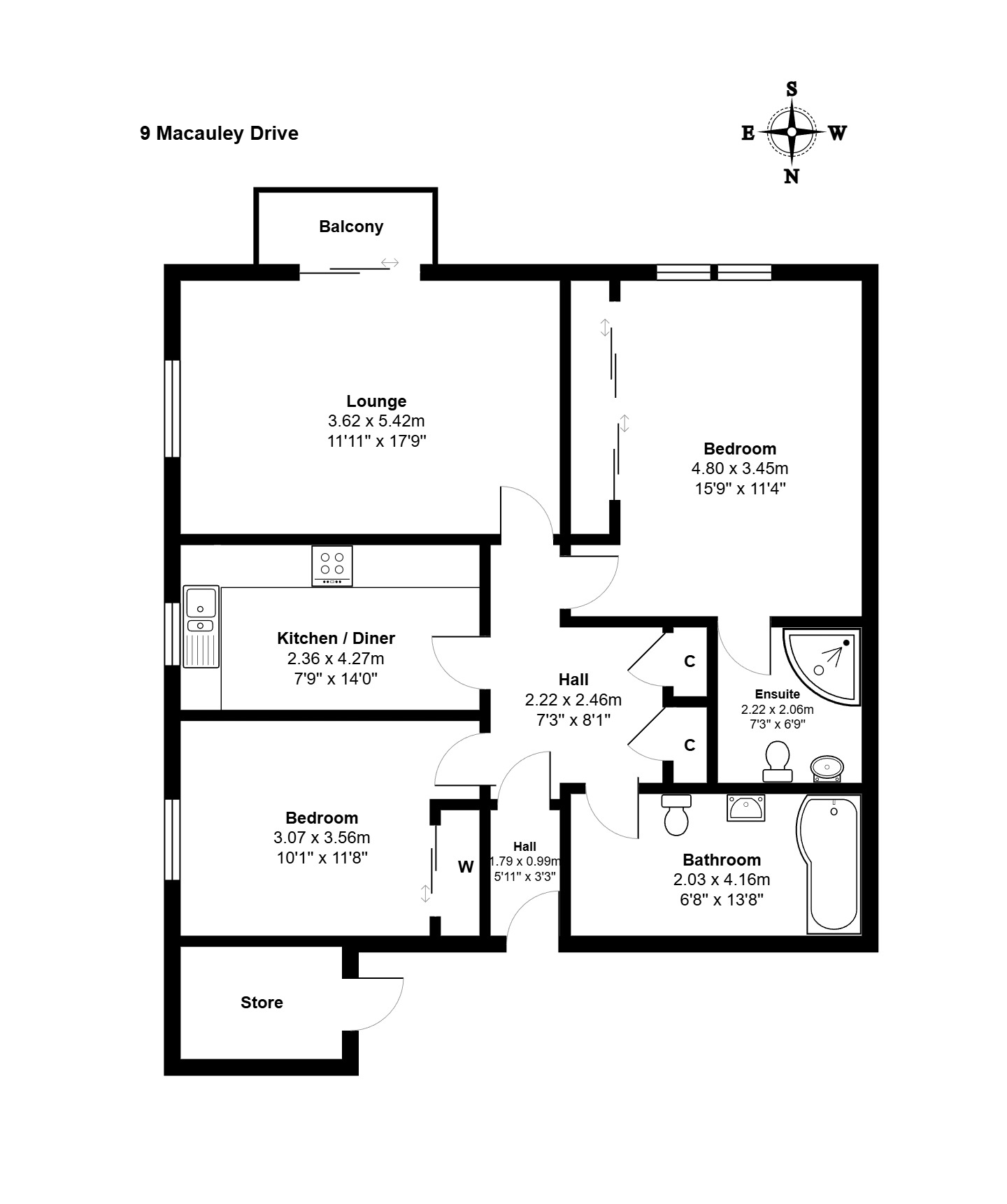 Accommodation comprises: Entrance Hall with generous storage cupboards; Spacious Lounge with Balcony overlooking landscaped grounds; Master Bedroom with fitted wardrobe and En suite shower; Double bedroom with fitted wardrobe; Spacious tiled bathroom with 3 piece suite; Fully Fitted Kitchen.