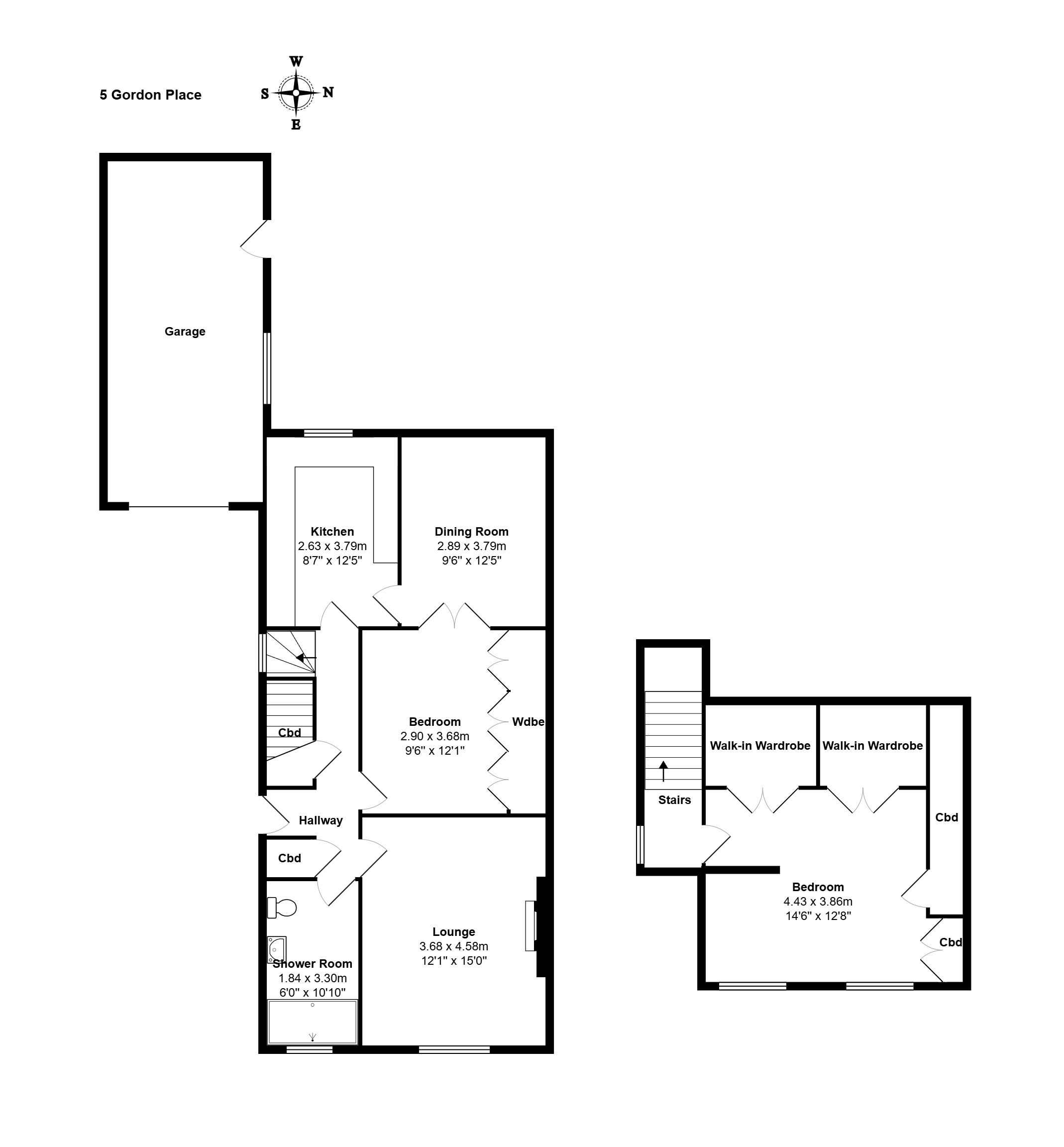 An extremely spacious double bedroom with two windows overlooking the front of the property. Two deep fitted wardrobes providing shelving and hanging space. Eaves storage. Vertical blinds. Carpeted.