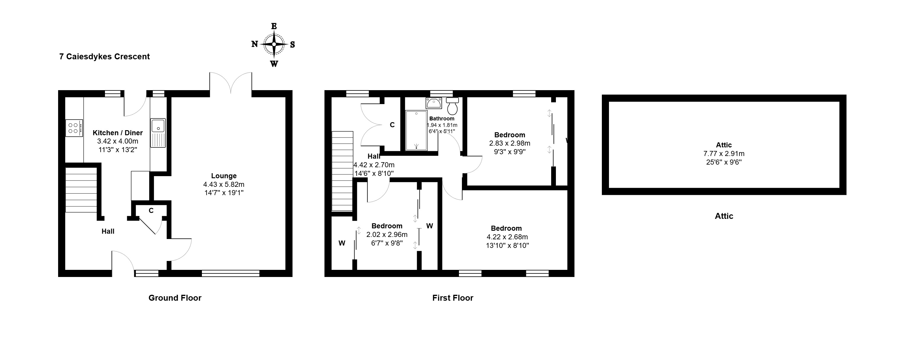 With window to rear. Fitted storage cupboard. Access to attic space. Carpeted.